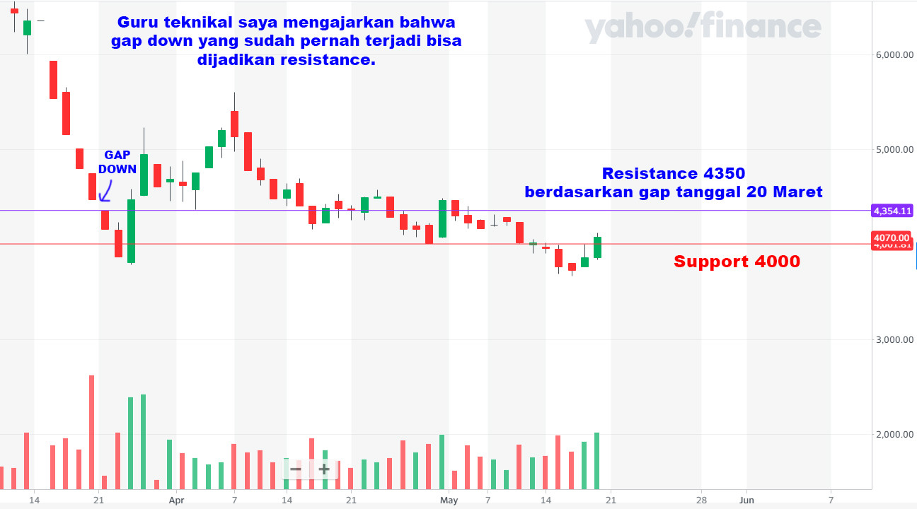 Berarti support BMRI 4000 dan resistancenya 4350.